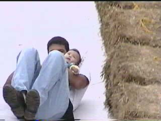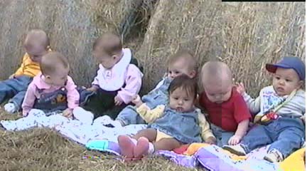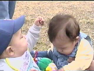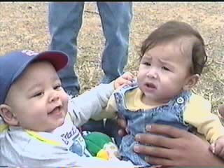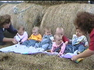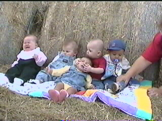 Blake tries to rip Sierra's face off as Graycen mourns the loss of her friend Madelyn (who is no longer in the picture because she has just fallen over!). Click here to download an MPEG movie of Madelyn's tumble (162 KB). (L to R: Graycen, Schylar, Sierra, Blake, Devin) |
